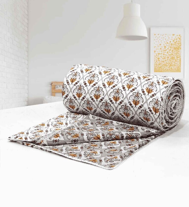 Grey Cotton Floral 144 TC Double Bed Dohar