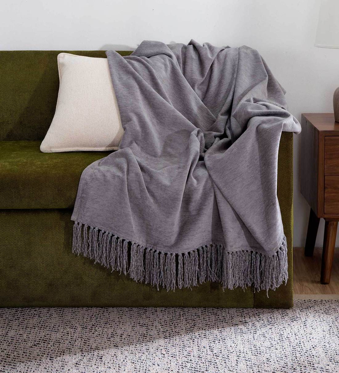 Jessica Grey Cotton Solid 70X51 Inch Self Textured Throw