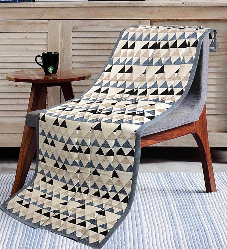 Grey Cotton Printed 63X55 Inch Reversible Throw
