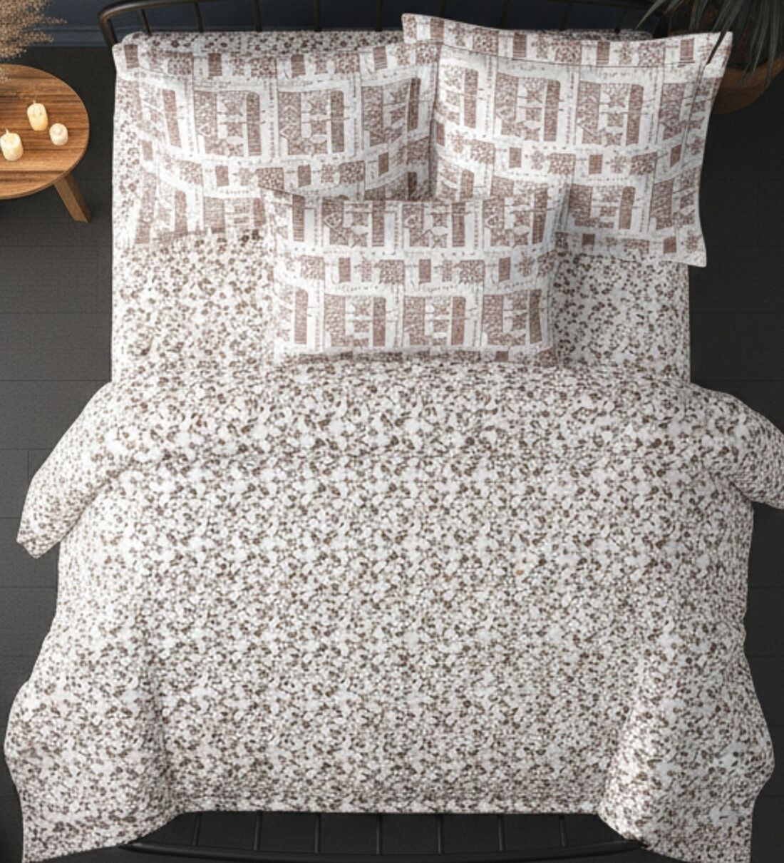 Grey Cotton Pritned 300TC Super King Bedsheet with 2 Coordinate Pillow Covers