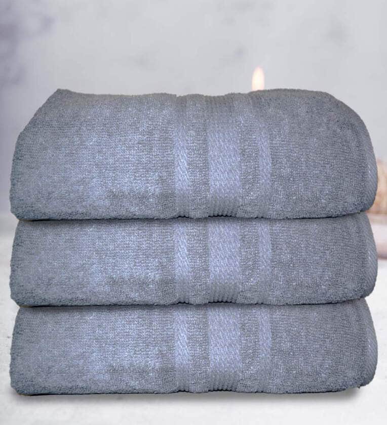 Grey Cotton Solid 500 GSM Bath Towels (Set of 3)