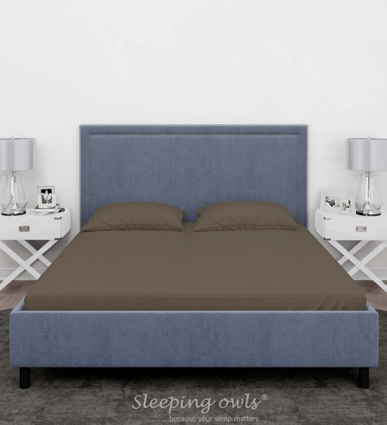 Sleeping Owls 100% Soft Cotton Solids Finest 300TC Plain Super King Bedsheet with 2 Pillow Cover - TAUPE