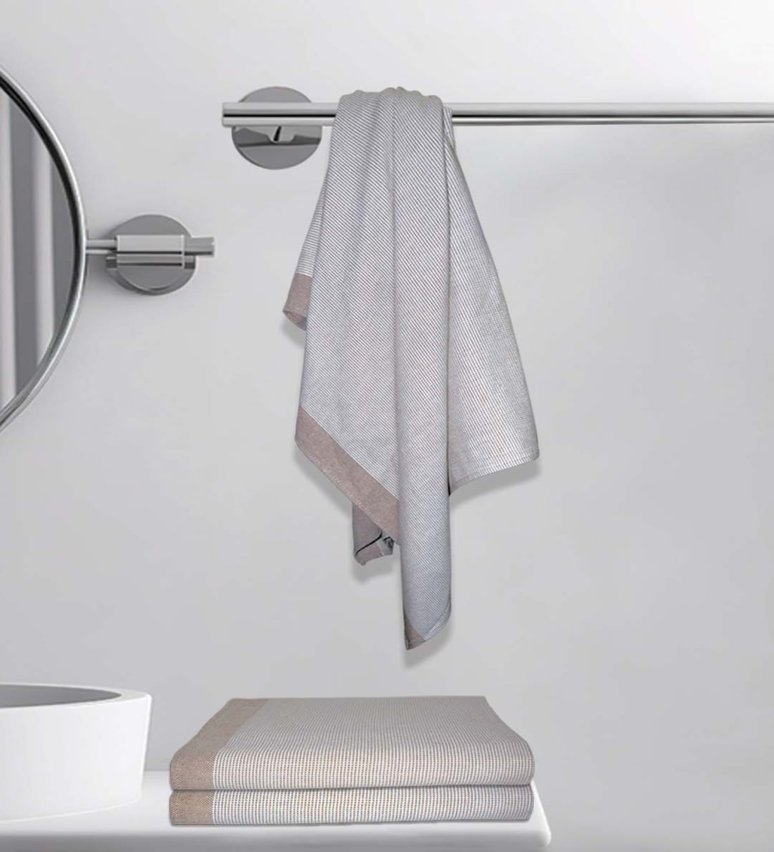 Grey Cotton Striped 220 GSM Bath Towels 3 Pc