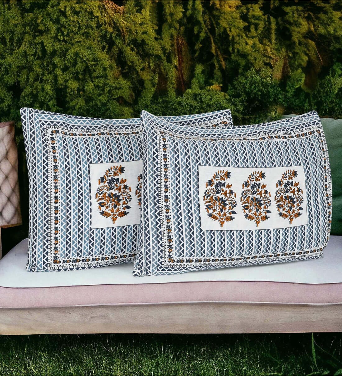 Grey 220 TC Cotton Traditional 28 x 18 Inch inches Pillow Covers (Pack of 2)