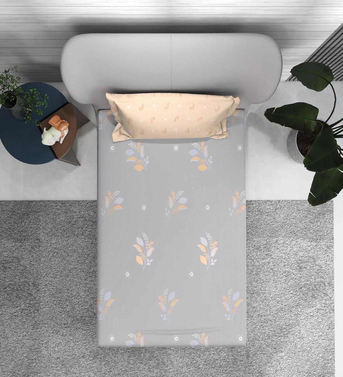 Grey Floral 160 TC Microfiber Single Sized Bedsheet with 1 Pillow Cover Petal Harmony Collection