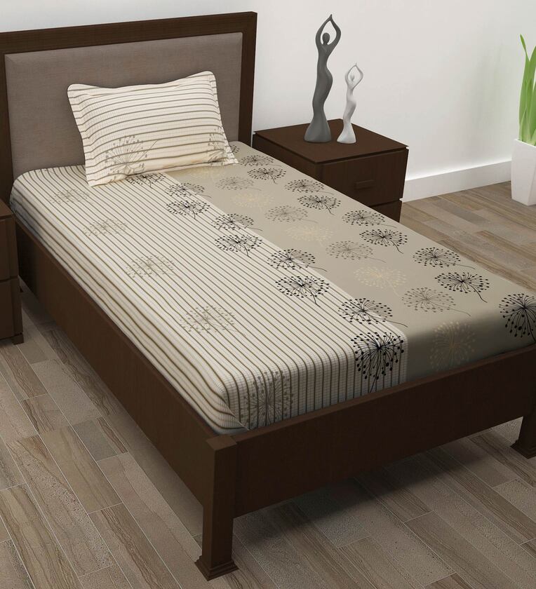 Grey Floral 186 TC 100% Cotton Single Bed Sized Bed Sheets With 1 Pillow Cover