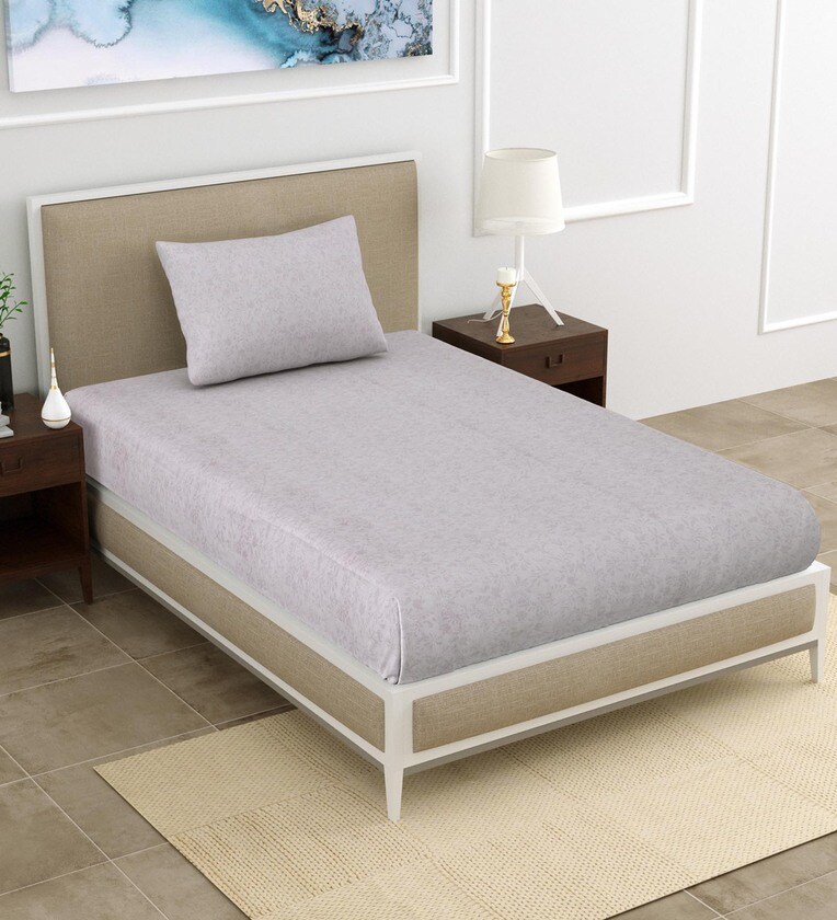 Grey Floral 186 TC Cotton Single Bedsheet with 1 Pillow cover