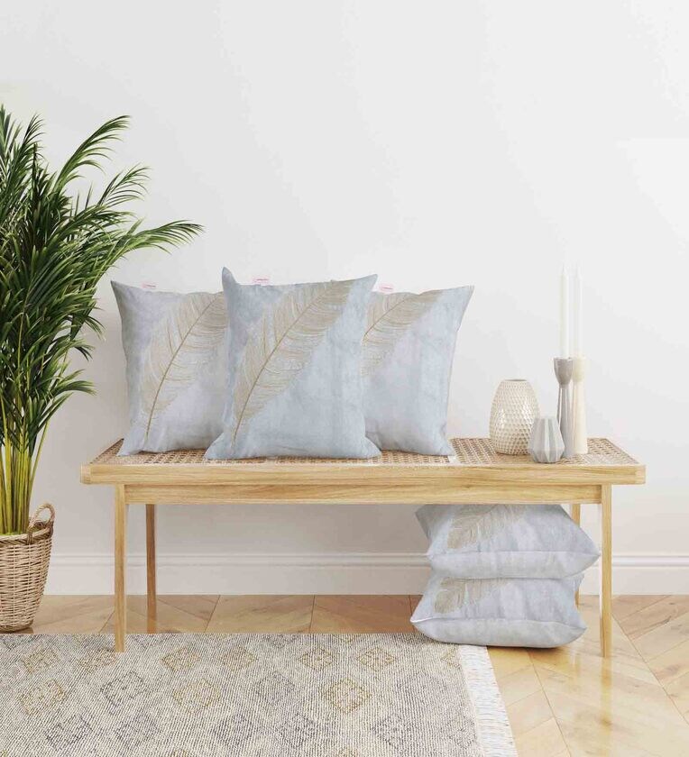 Grey Floral Velvet 16 x 16 Inches Cushion Covers (Set of 5)