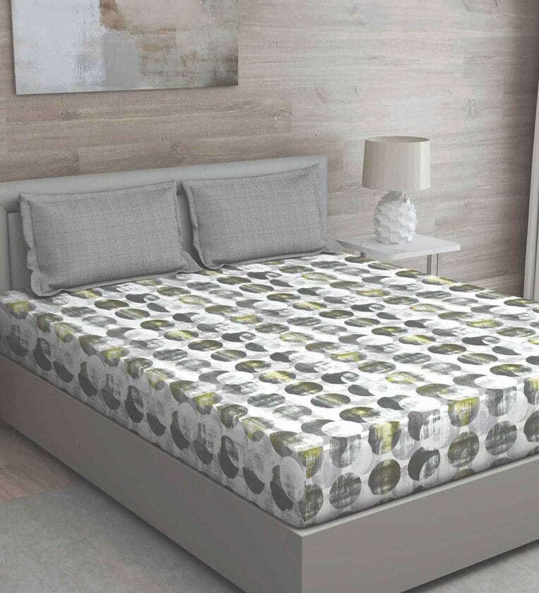 Grey Geometric 144 TC Cotton Queen Sized Bed Sheets with 2 Pillow Covers