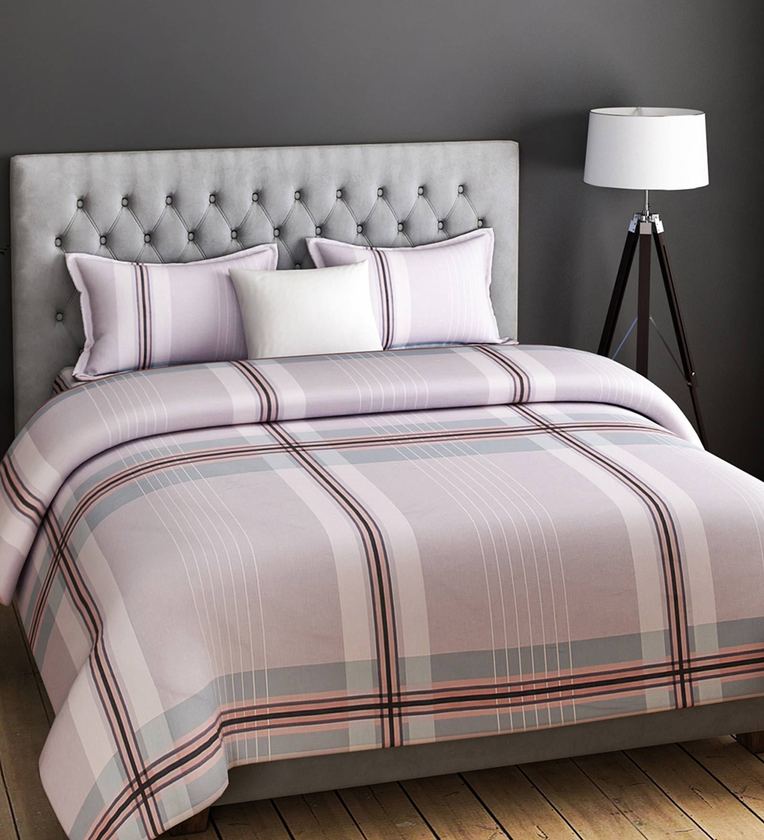 Grey Geometric 200 TC Cotton 1 Double Bedsheet with 2 Pillow Covers