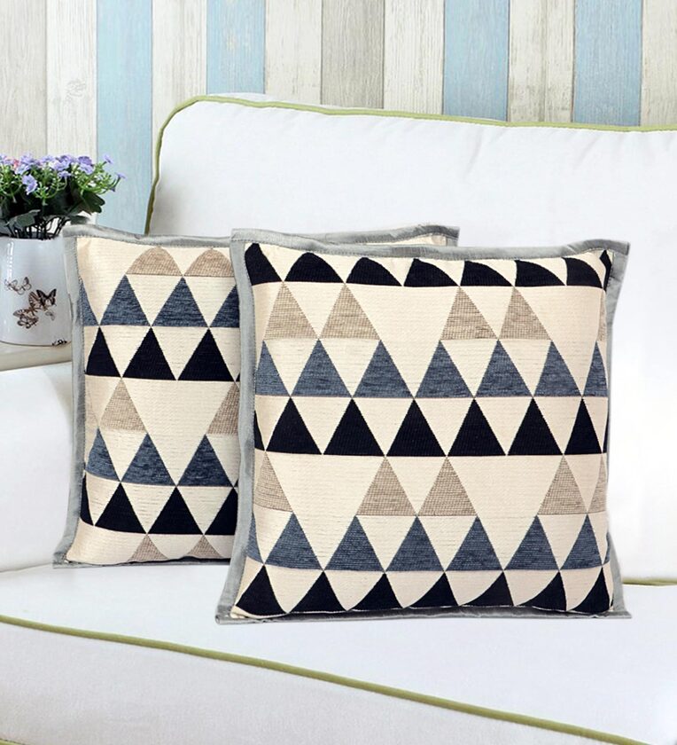 Grey Geometric Cotton 16 x 16 Inches Cushion Covers (Set of 2)