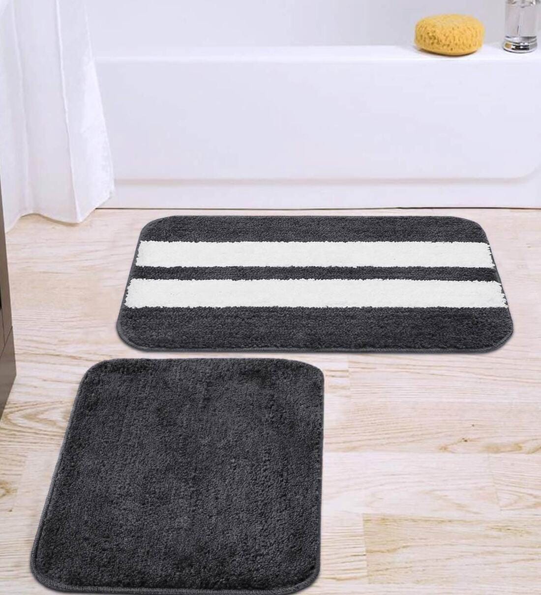 Grey Geometric Microfibre 16x24 Inches AntiSkid Bath Mats (Set of 2)