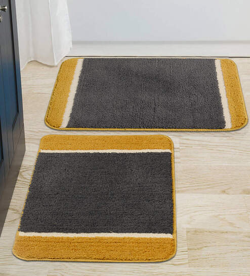 Grey Geometric Microfibre 24x16 Inches AntiSkid Bath Mats (Set of 2)