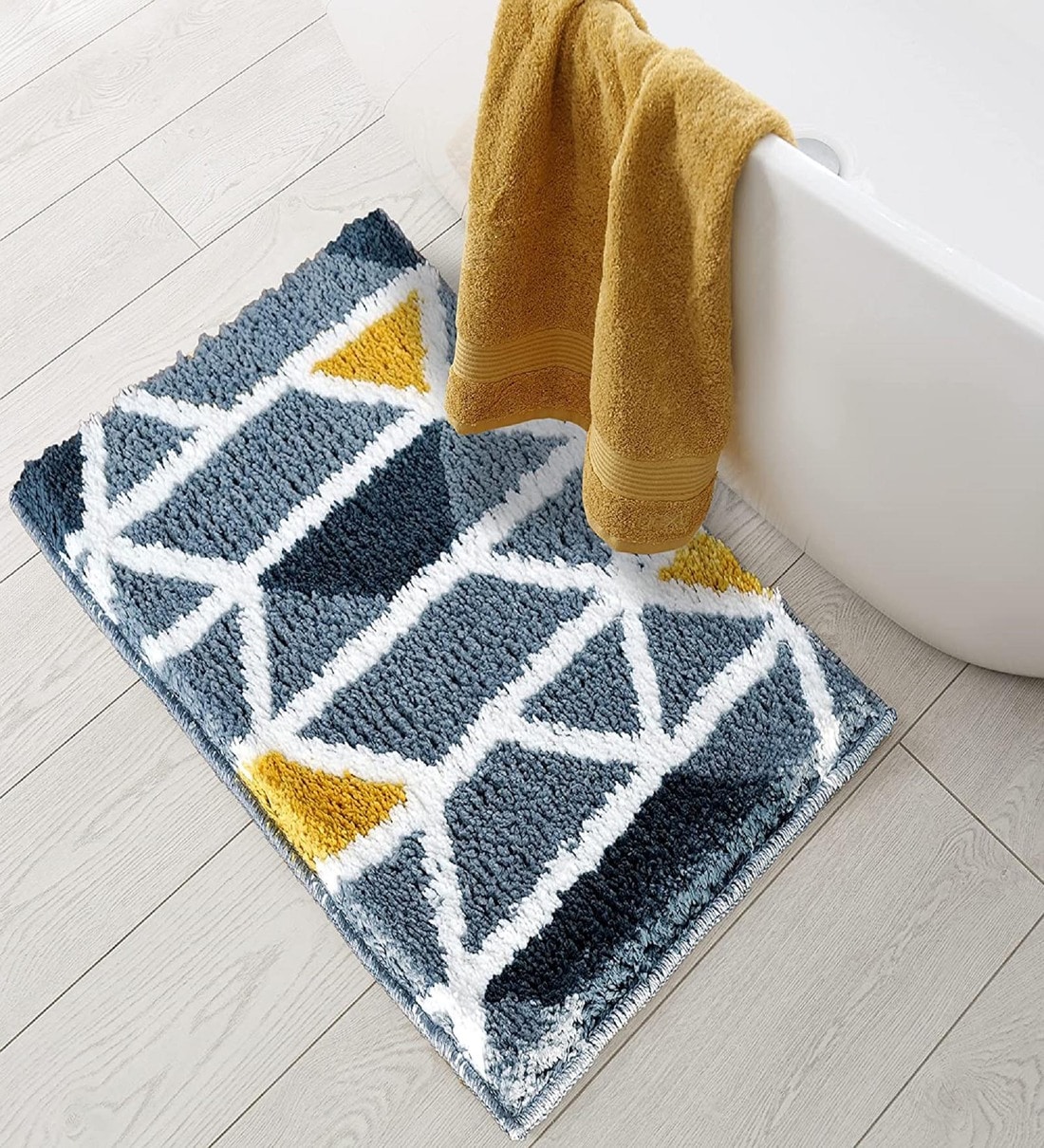 Grey Geometric Microfibre 24x16 Inches Super Soft Bath Mat