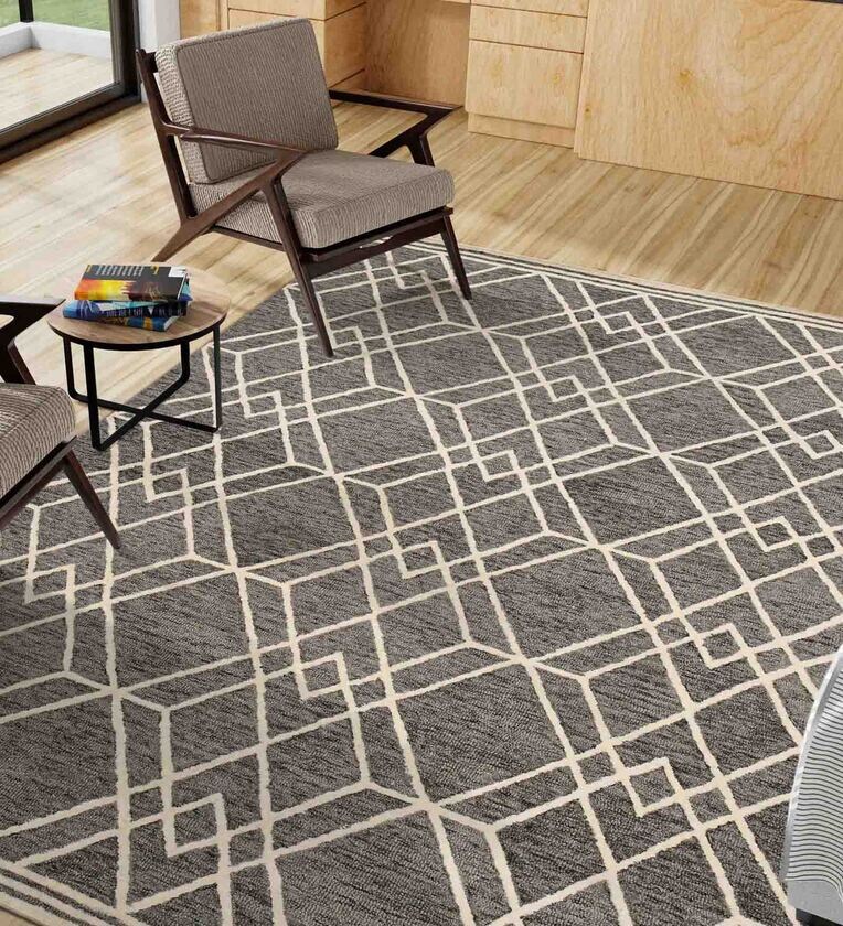 Grey Geometric Wool 8 ft x 10 ft Hand Tufted Carpet