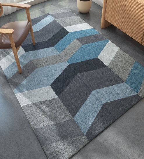 Grey Geometrical Wool 5 ft X 8 ft Rectangle Flat Weaves