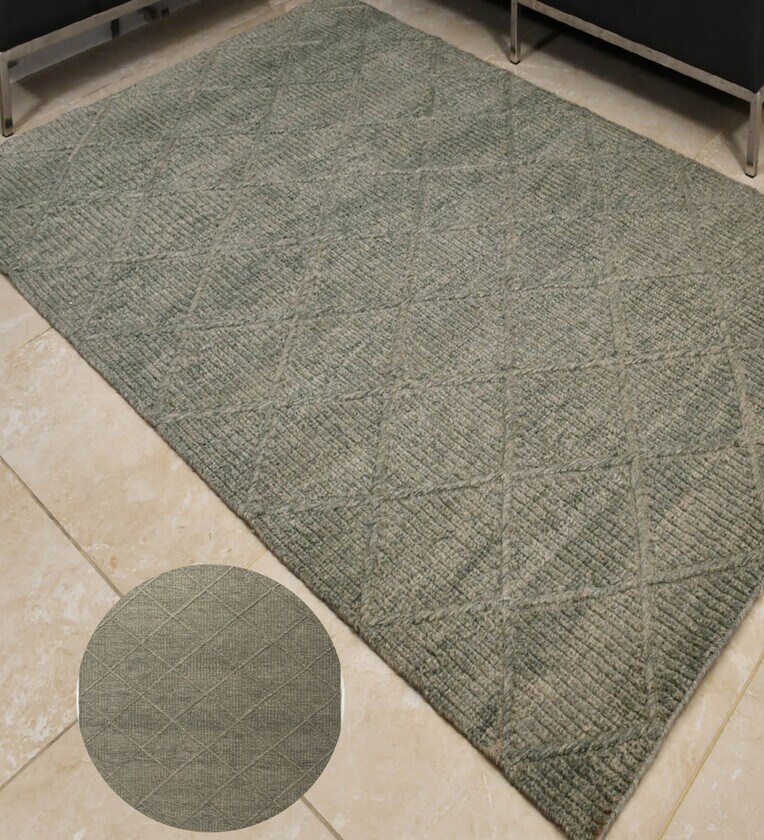 Grey Geometrical Wool 8X5 Feet Hand Woven Carpet