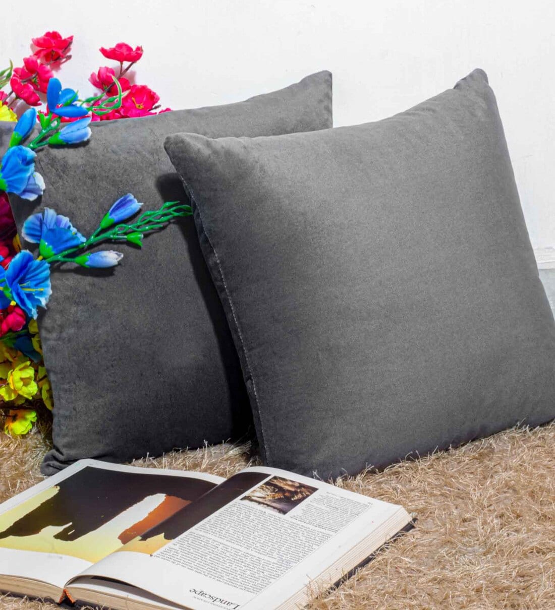 Grey Holland Velvet Solid 16X16 Inches Cushion Cover