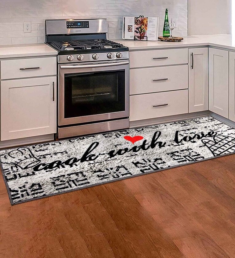 If youre someone who loves to add a hint of retro to your home decor, then this runner is for you. With the text- cook with love, this cute runner is a keeper! While giving your home an aesthetic vibe, it is also easy to maintain.