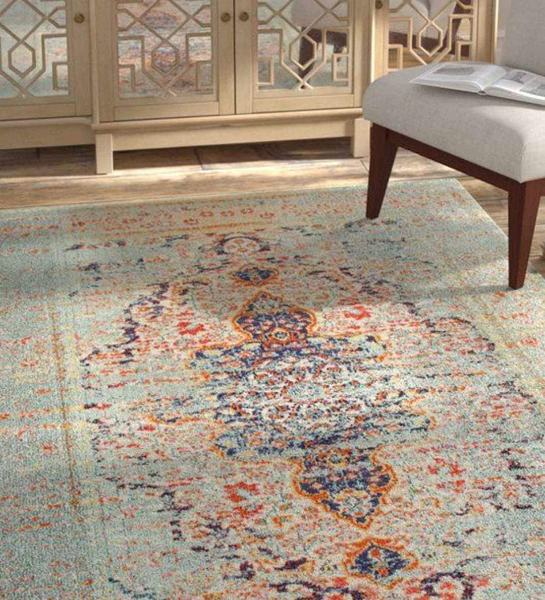 Grey Persian Polyester 4 ft x 6 ft Machine Made Carpet