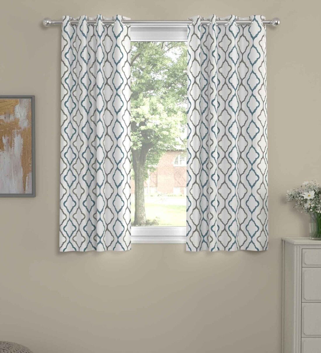Grey Polyester Abstract 5ft Semisheer Eyelet (2 pc) Window Curtains