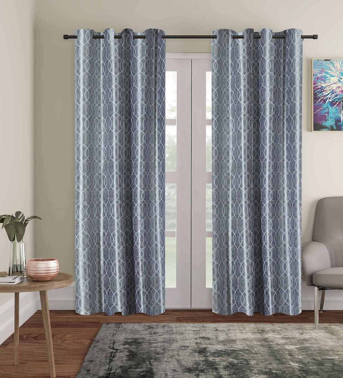 Grey Polyester Abstract 9ft Blackout Eyelet Door Curtains