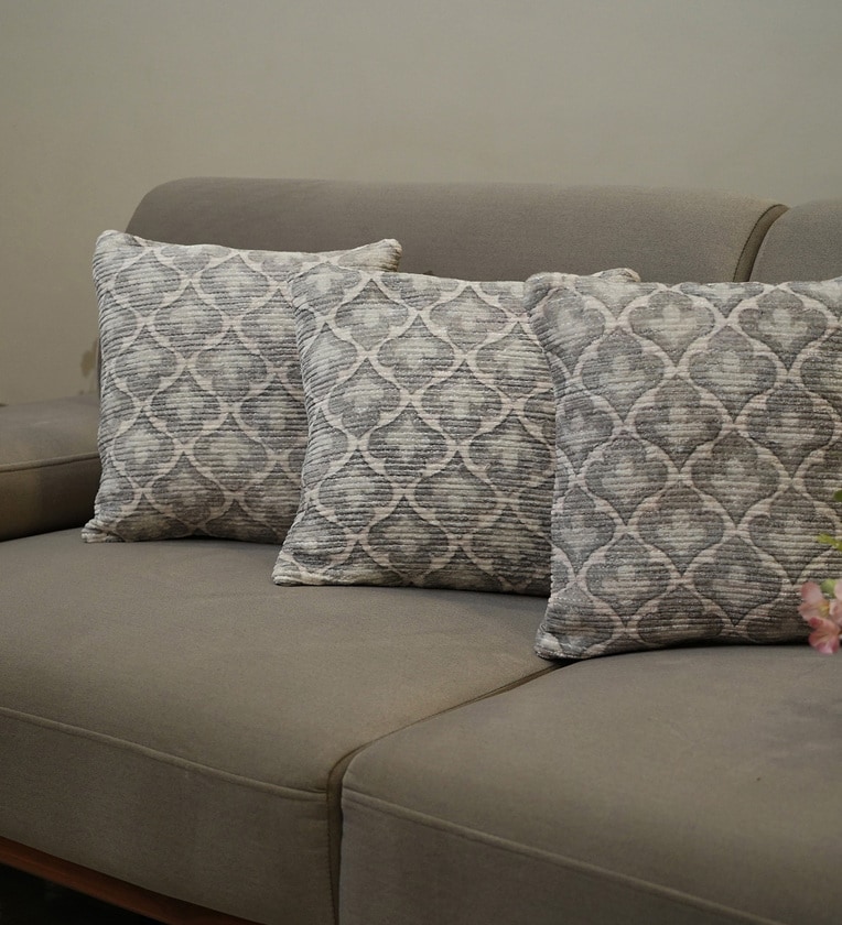 Grey Polyester Floral 16x16 inches Cushion Covers Set of 3
