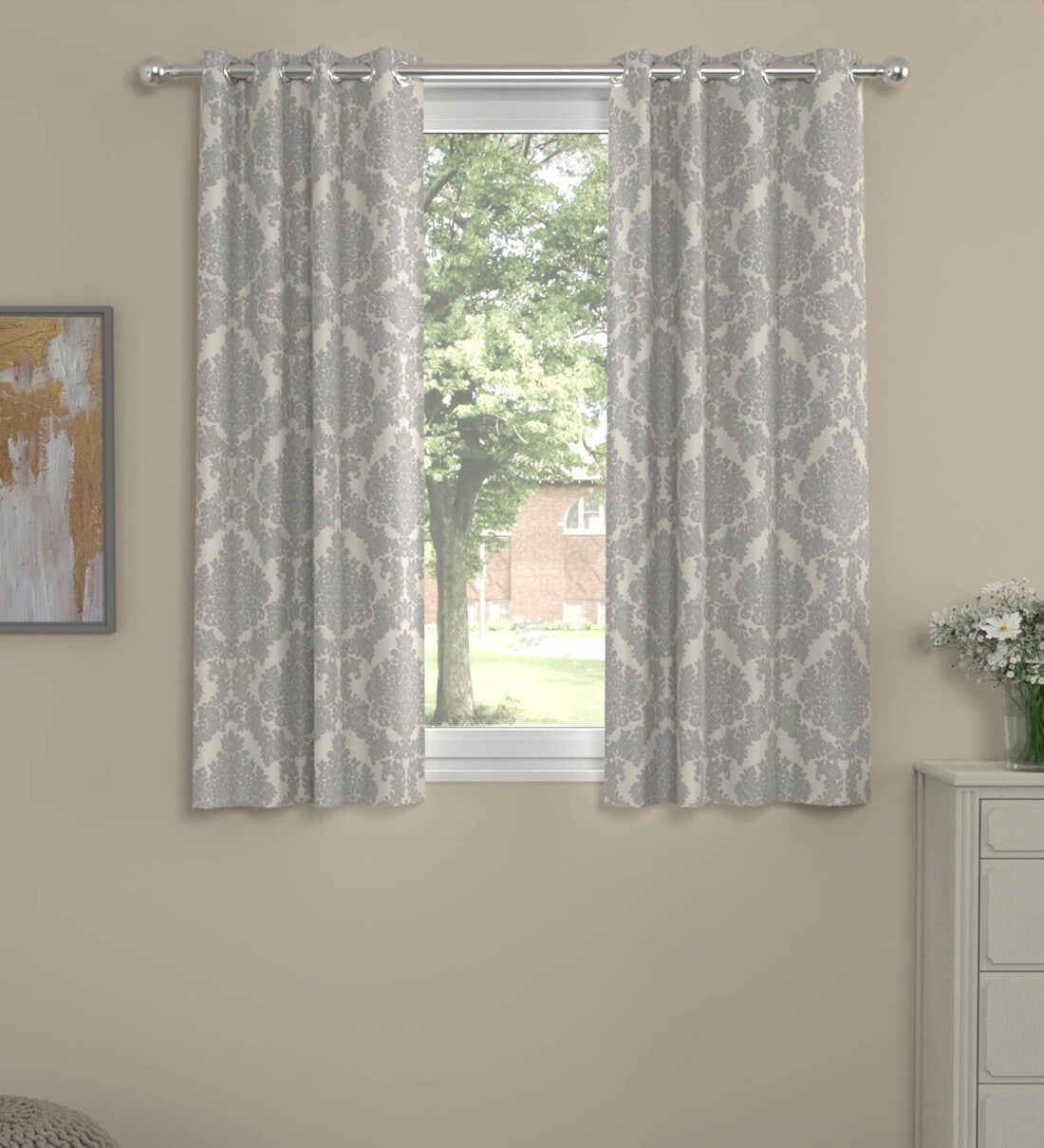 Grey Polyester Traditional 5ft Semisheer Eyelet (2 pc) Window Curtains
