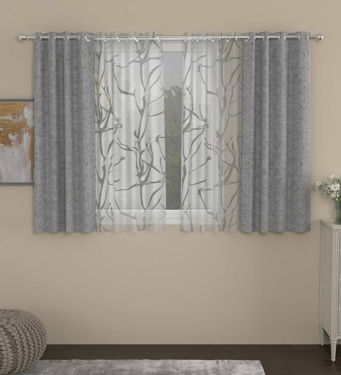 Grey Solid Poly Cotton 5 Ft Semisheer Eyelet Window Curtains (Set of 4)