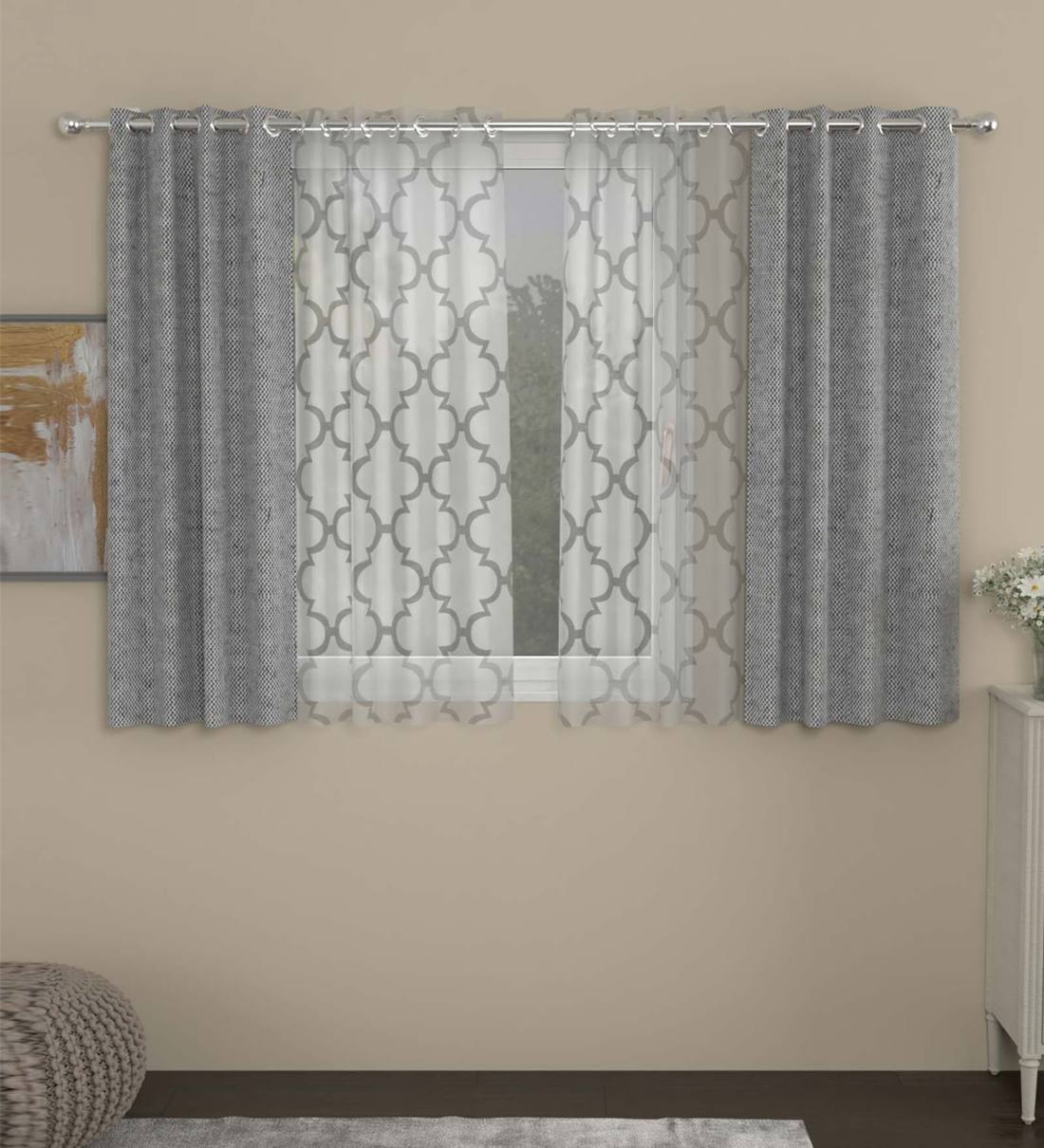 Grey Solid Poly Cotton 5 Ft Semisheer Eyelet Window Curtains (Set of 4)