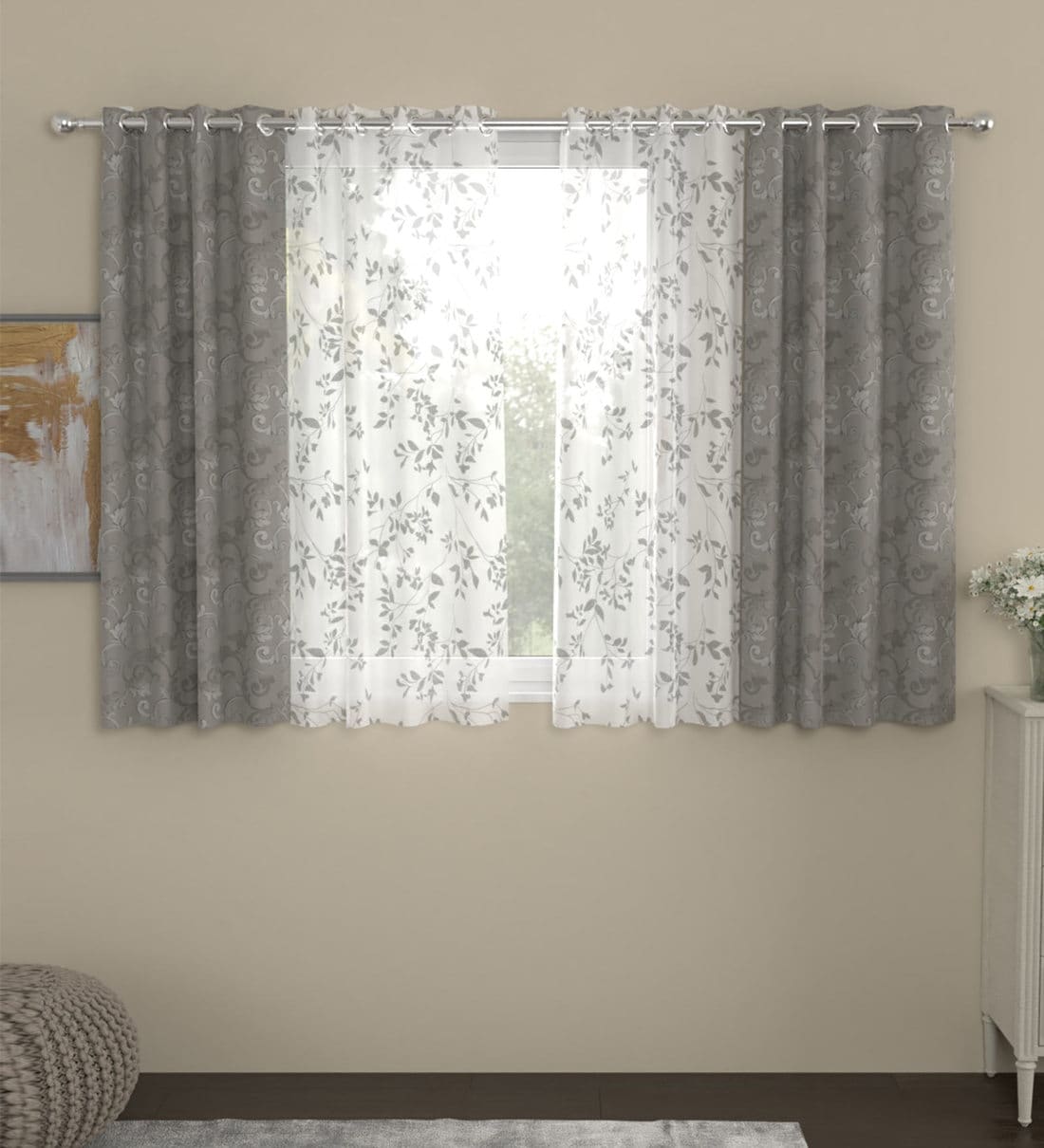 Grey Semisheer Polyester 5 Feet Eyelet Set of 4 Curtains