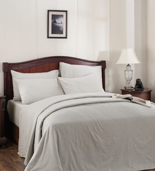 Grey Solid 100% Cotton Double Bed Duvet Cover With 2 Pillow Covers
