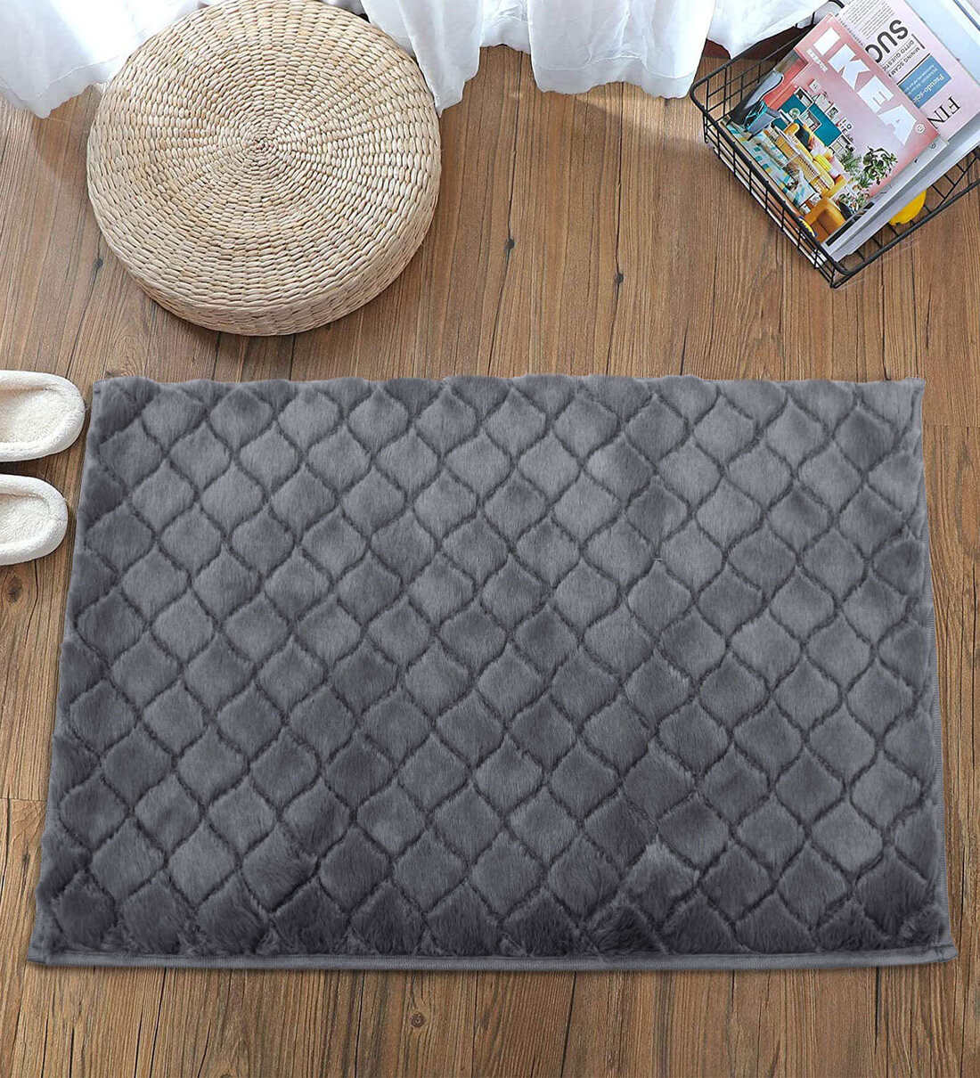 Made Of 1000 Gsm From 100% High-quality Rabbit Fur To Add Super-soft Feel & Comfort. We Use Premium Plush Faux Rabbit Skin. Each Pile Of The Rugs Is Longer Than 0.8 Inches. Extra Thick, Giving You A Luxurious Touch Feel. Which Soaks Up Thread Has Excellent Water Absorption Capacity & Dries Faster.
