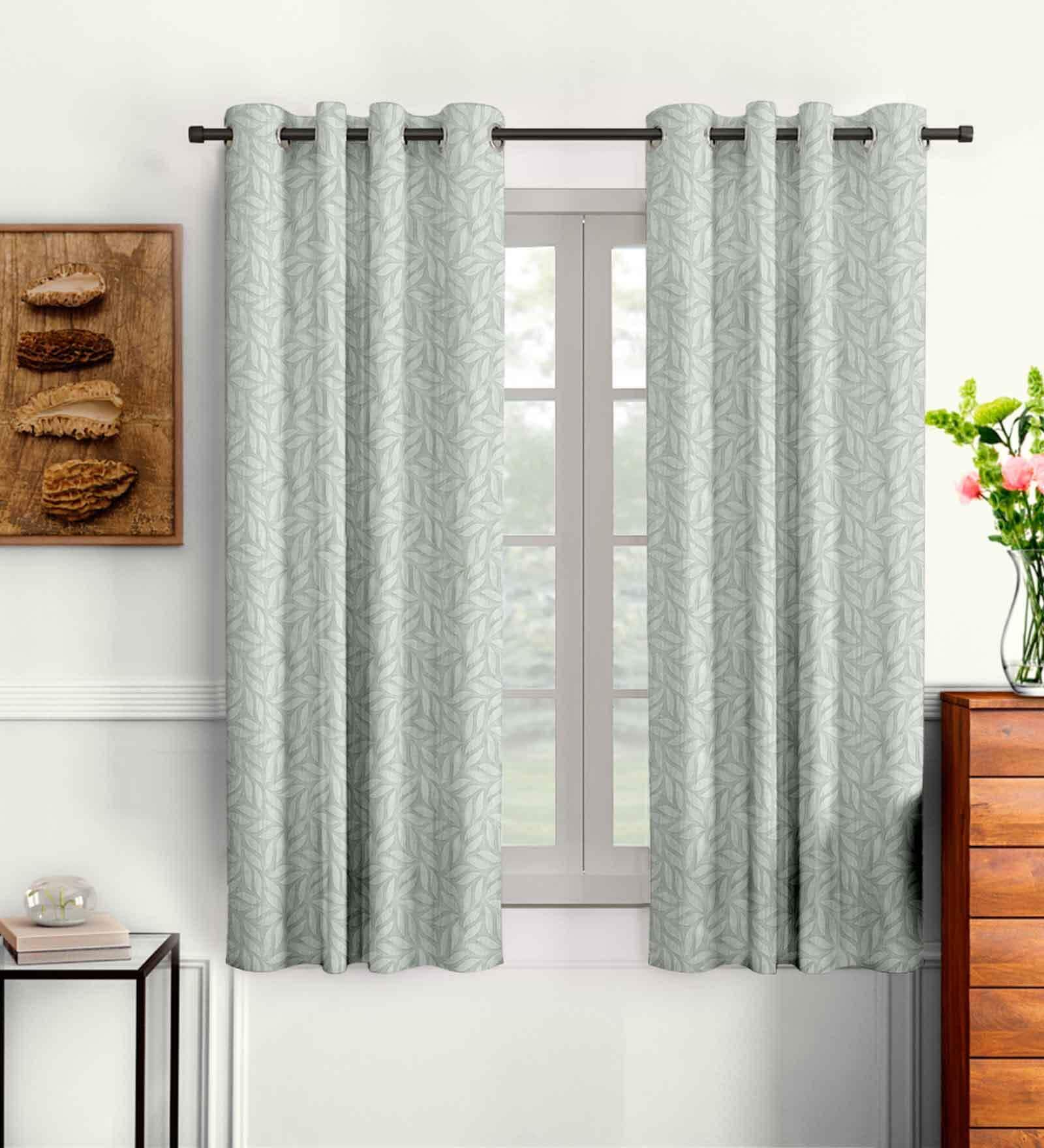 Grey Solid Polyester 5 Ft Semisheer Eyelet Window Curtains (Set of 2)
