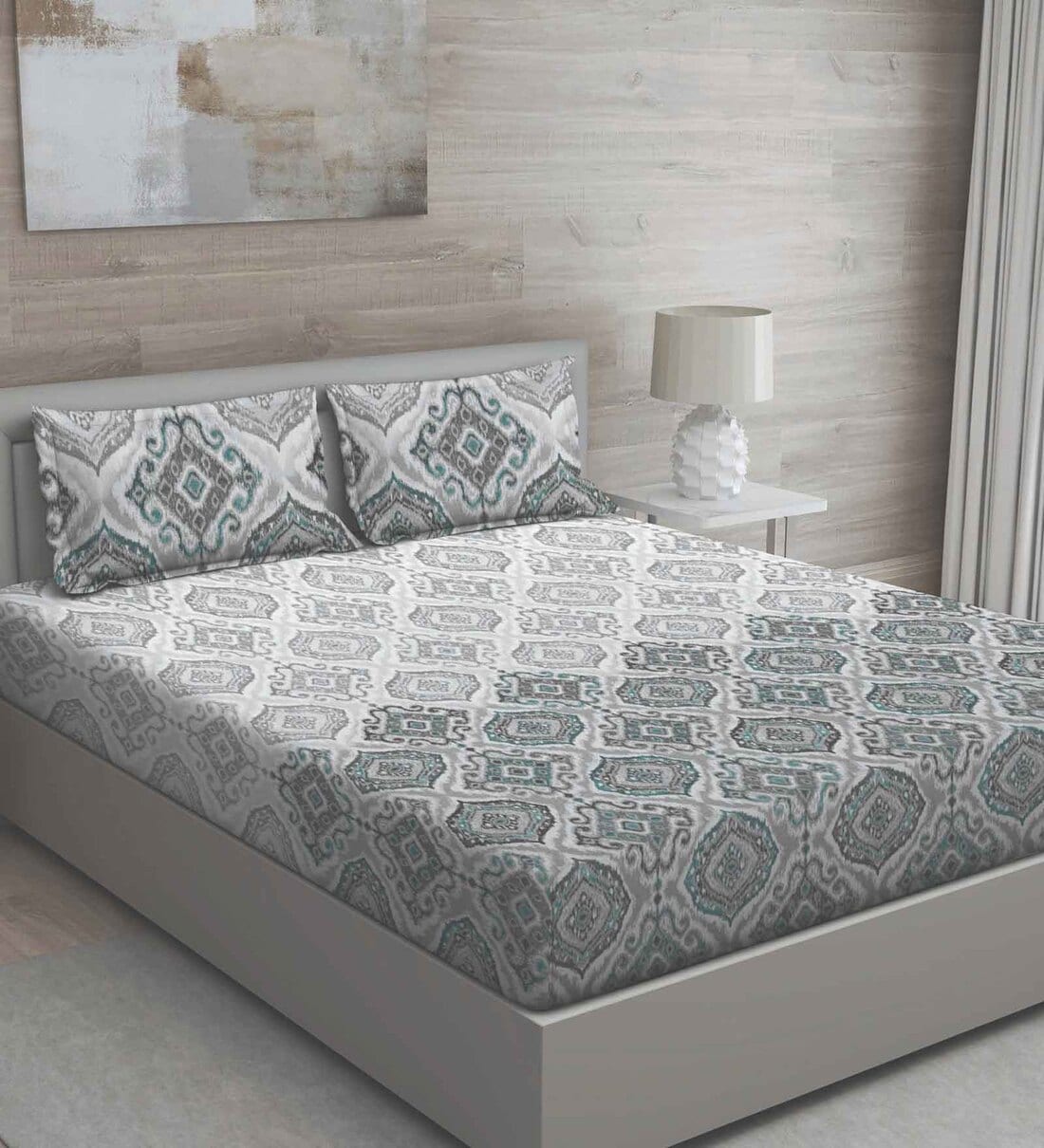 Grey Traditional 150 TC Cotton Queen Sized Bed Sheets with 2 Pillow Covers