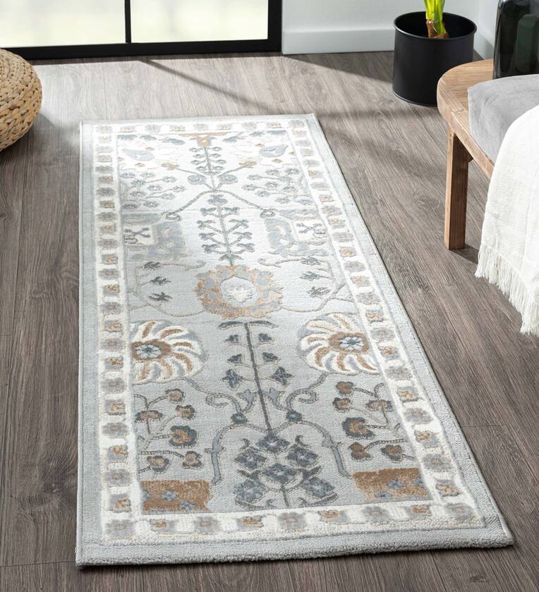 Grey Traditional Polyester 59x24 Inches Machine Made Floor Runner
