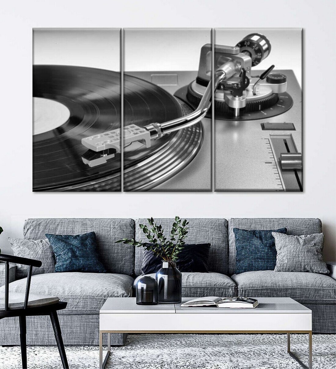 Grey Vinyl Record Player Panels Canvas Wall Art Panels ( Set Of 3)