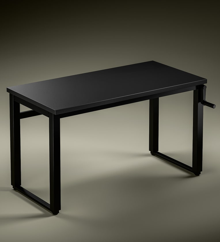 ?????????????????? ????????????????????????????: Mode - Manual | Frame Material - CRCA Steel | Height Range - 2.2 Ft to 3.9 Ft | Table Top - 1200mm x 600mm | Stages - 3 | Table Top - 25mm E1 Particle Wood | Load Capacity - 80 KGs