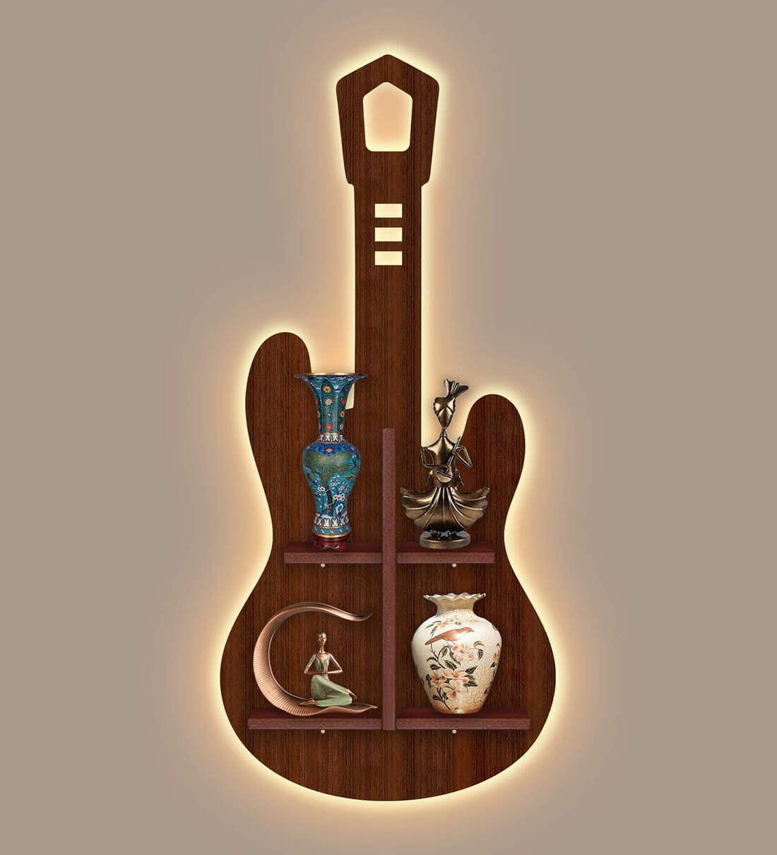 Guitar Shape Walnut Wood Wall Shelf