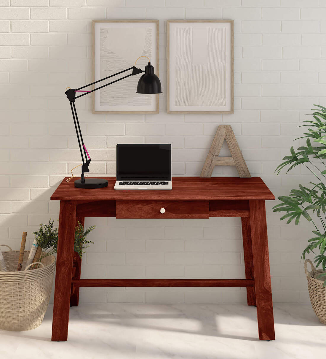Haarlem Sheesham Wood Writing Table In Scratch Resistant Honey Oak Finish