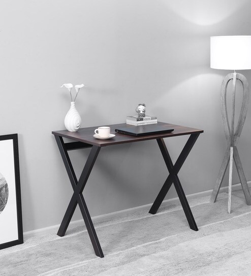 Hakkido Metal Writing Table in Walnut & Black Finish