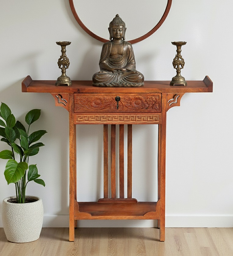 Hallstadt Mango Wood Console Table with Drawer In Walnet Finish
