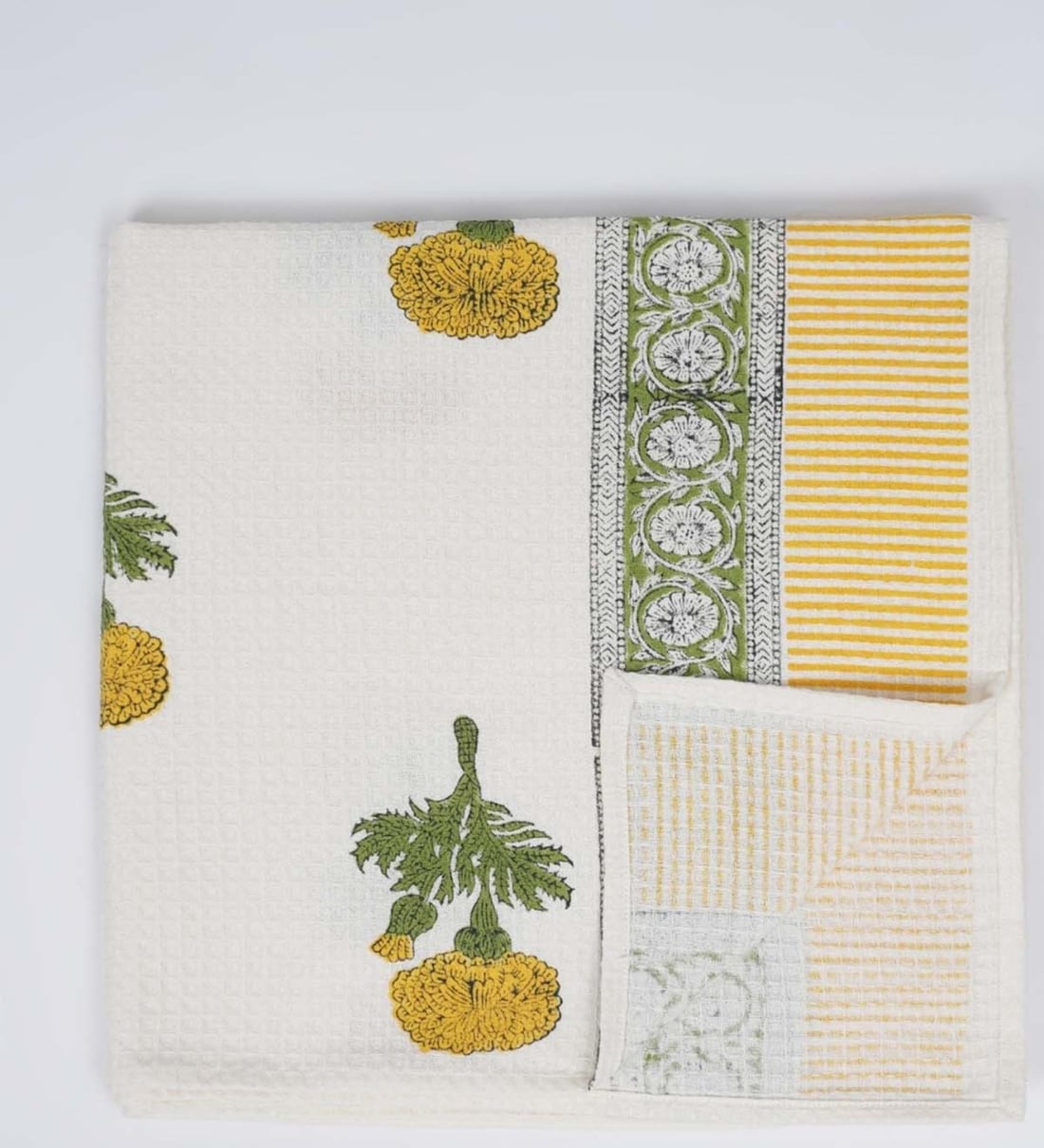 Hand Block Printed 100% Pure Cotton Floral Yellow 240 GSM Super Absorbent 1 Hand & 1 Bath Towel Set