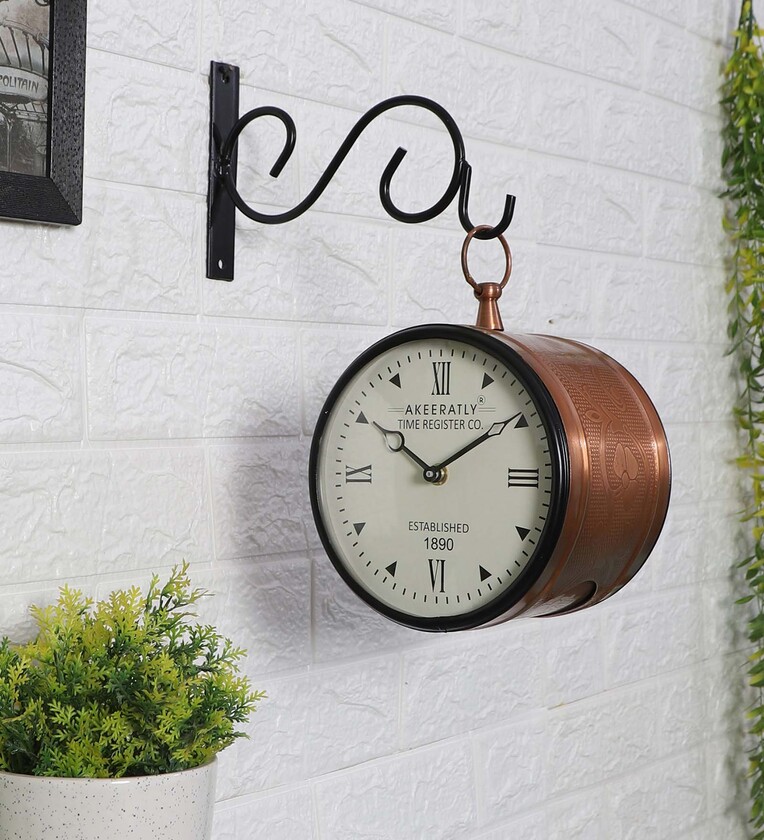 Handcrafted Eaching Brown Metal Railway Clock
