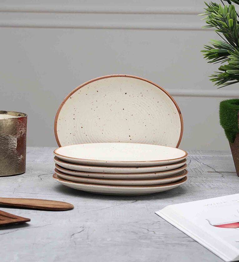 Handcrafted Ribbed (Set of 6) Ceramic Quarter Plate