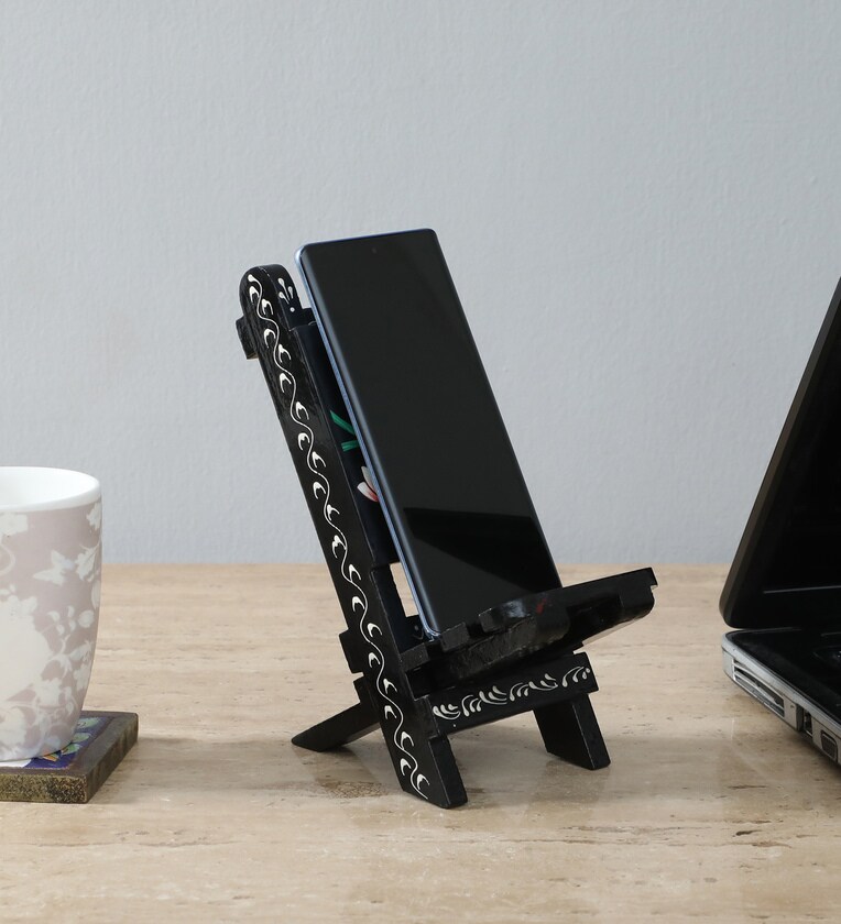 HANDICRAFT HANDPAINTED MDF CHAIR STYLE MOBILE &TAB STAND | FOLDABLE