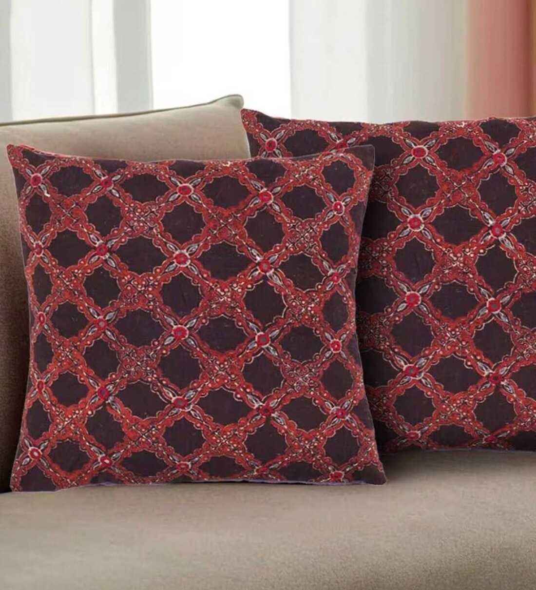 Add a bold and artistic flair to your living space with the Handmade Block Printed Cotton Cushion Covers by Peepul Tree. This set of two 16x16 inch covers features a striking combination of brick red and black, brought to life through the age-old technique of hand block printing. Crafted from soft, durable cotton, each piece is meticulously printed by skilled artisans, celebrating traditional Indian craftsmanship with every detail. The rich color palette and intricate patterns make these cushion covers a perfect accent for sofas, beds, or lounge chairs, effortlessly enhancing both contemporary and ethnic interiors. Ethically made and thoughtfully designed, they reflect Peepul Tree s dedication to timeless design, heritage art forms, and sustainable living.