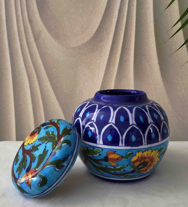 Handmade Mandi 300ml Blue Colour Clay Jar Container