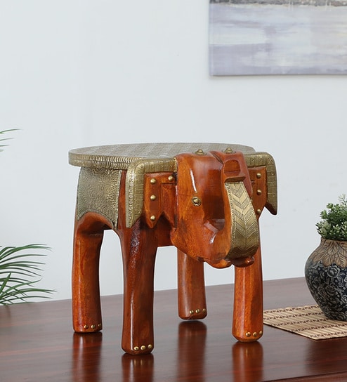 Handpainted Elephant Teak Solid Wood Chowkie