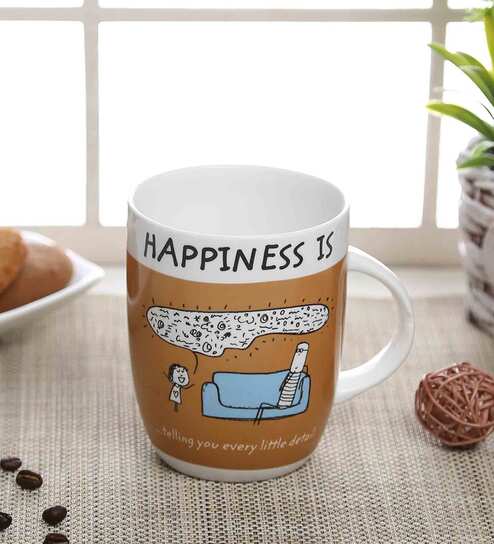 Happiness Quotes 300ml Brown & White Ceramic (Set of 2) Coffee Mug